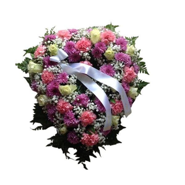Uma cora fúnebre de coração feita com rosas brancas e margaridas rosa é uma homenagem delicada e cheia de significado. A forma em coração simboliza amor eterno e lembranças eternas, enquanto as flores escolhidas transmitem sentimentos de pureza, tranquilidade e ternura.