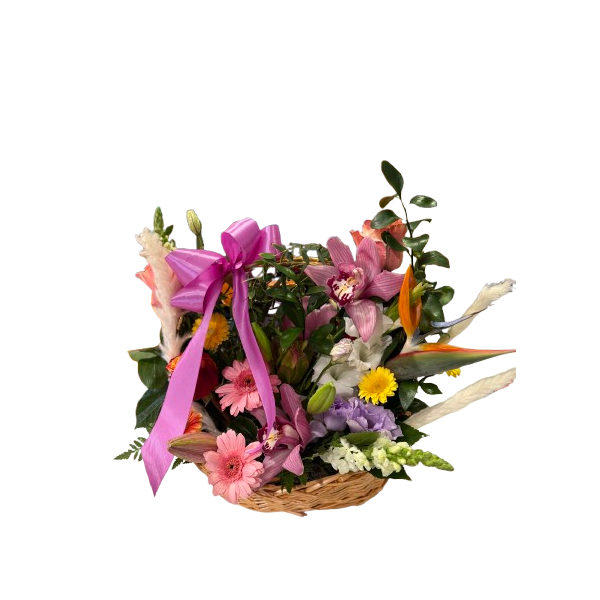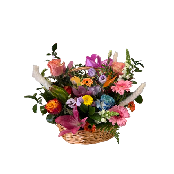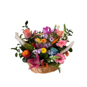 A Cesta Encanto de Flores é um presente perfeito para surpreender em qualquer ocasião especial. Composta por uma seleção harmoniosa de flores frescas, como rosas, gerberas, lírios, orquídeas e lisianthus, ela combina cores alegres e suaves em um cesto artesanal de vime.